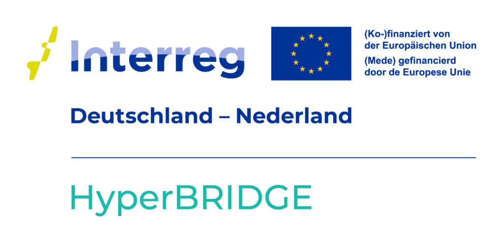 Project HyperBRIDGE is being implemented within the framework of the Interreg VI A programme Deutschland-Nederland and is co-financed by the European Union through the European Regional Development Fund (ERDF), as well as by the Dutch Ministerie van Economische Zaken, the MWIKE NRW, and the Provincie Groningen.