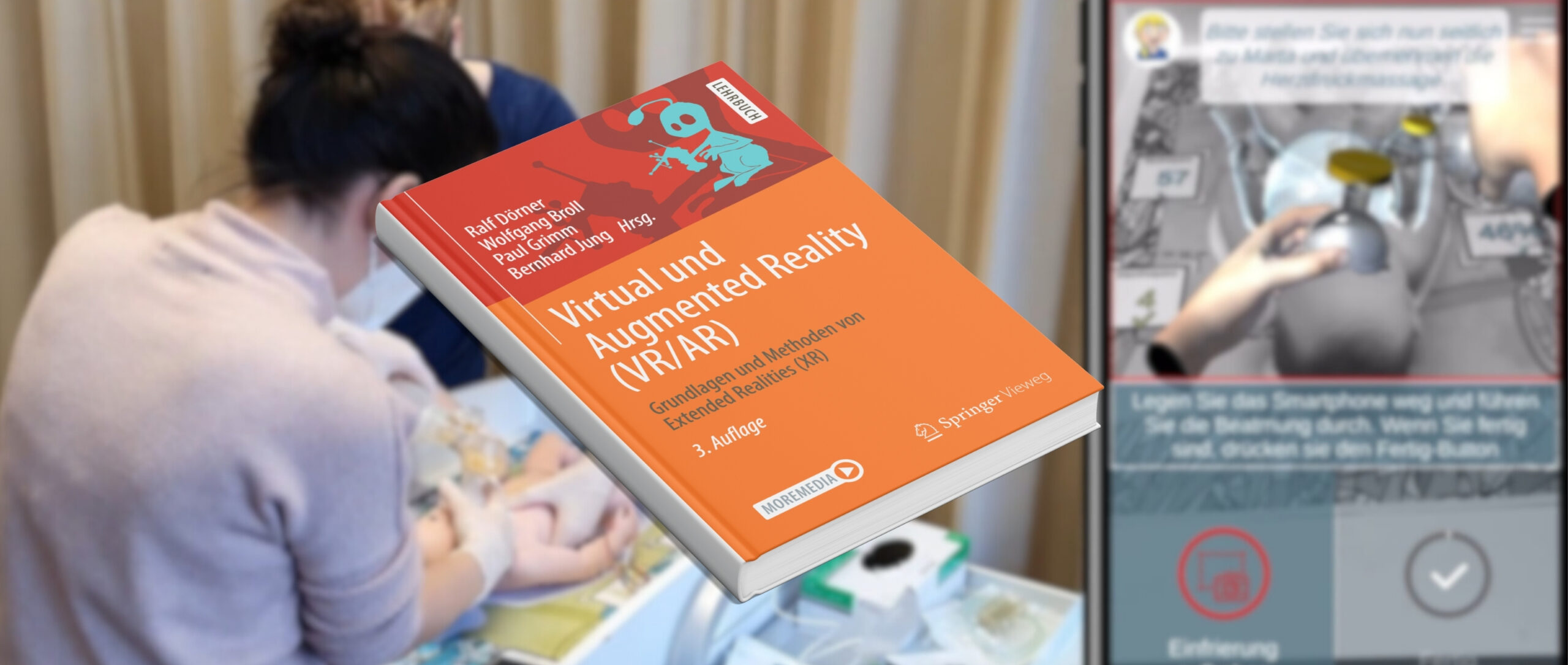 The third edition of one of the standard German textbooks in the Mixed Reality context, Virtual und Augmented Reality (VR/AR) (Springer Vieweg), has been published and includes a case study on the Heb@AR project. Authored by Thies Pfeiffer, Jonas Blattgerste, Annette Bernloehr, Kristina Vogel, and Nicola H. Bauer, the section “Heb@AR: Skalierbares AR-Training fĂĽr Hebammen” […]
