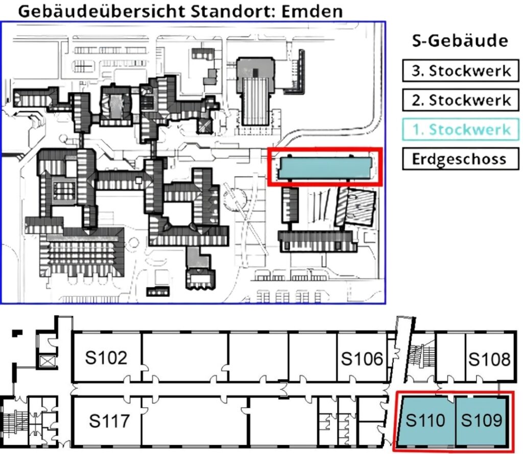 You can find us on the Emden Campus (Constantiapl. 4, 26723 Emden). We are located in Building 7 (Faculty of Technology / Electrical Engineering & Informatics). Please proceed to the first floor (Level 1); our main staff office is in room S109, and the lab facilities are right next door in S110.